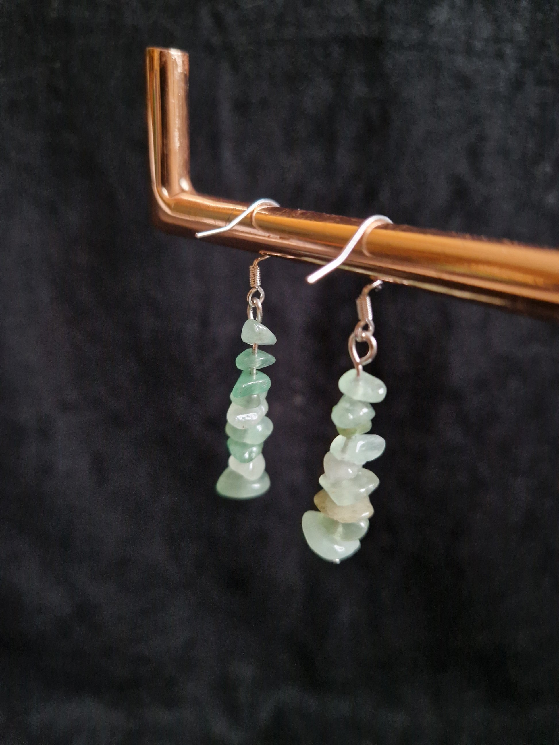 Simple green aventurine dangly earrings on silver earring hooks